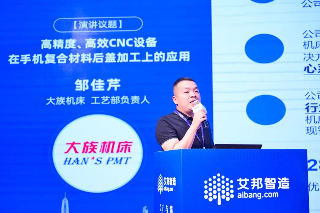 大族機床工藝負責人鄒佳芹帶來主題為“高精度、高效CNC設備在手機復合材料后蓋加工上的應用”的精彩演講,針對大族機床在3C領域的數控加工應用,就行業專用機型、柔性方案設計和自動化應用等一一作系統介紹,并重點講解分析了大族機床在鈦合金等3C行業新型材料上的工藝研究和最新成果。