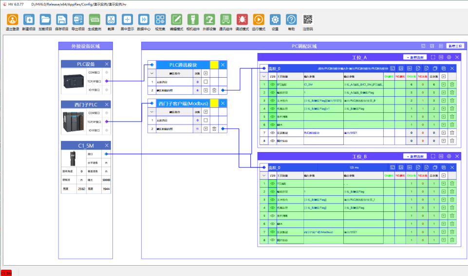 HV6.0視覺軟件平臺是一款多核處理器和GPU的軟硬件集成系統,系統架構層次分明,用戶界面友好,需求響應快,廣泛應用于工業圖像定位、對位、檢測、測量、讀碼、字符識別和驗證場景。該軟件系統目前分為視覺硬件模塊、通信模塊、數據中心模塊、視覺流程功能模塊、幾何計算模塊、案例模塊、用戶權限模塊,軟件支持運行界面自定義。