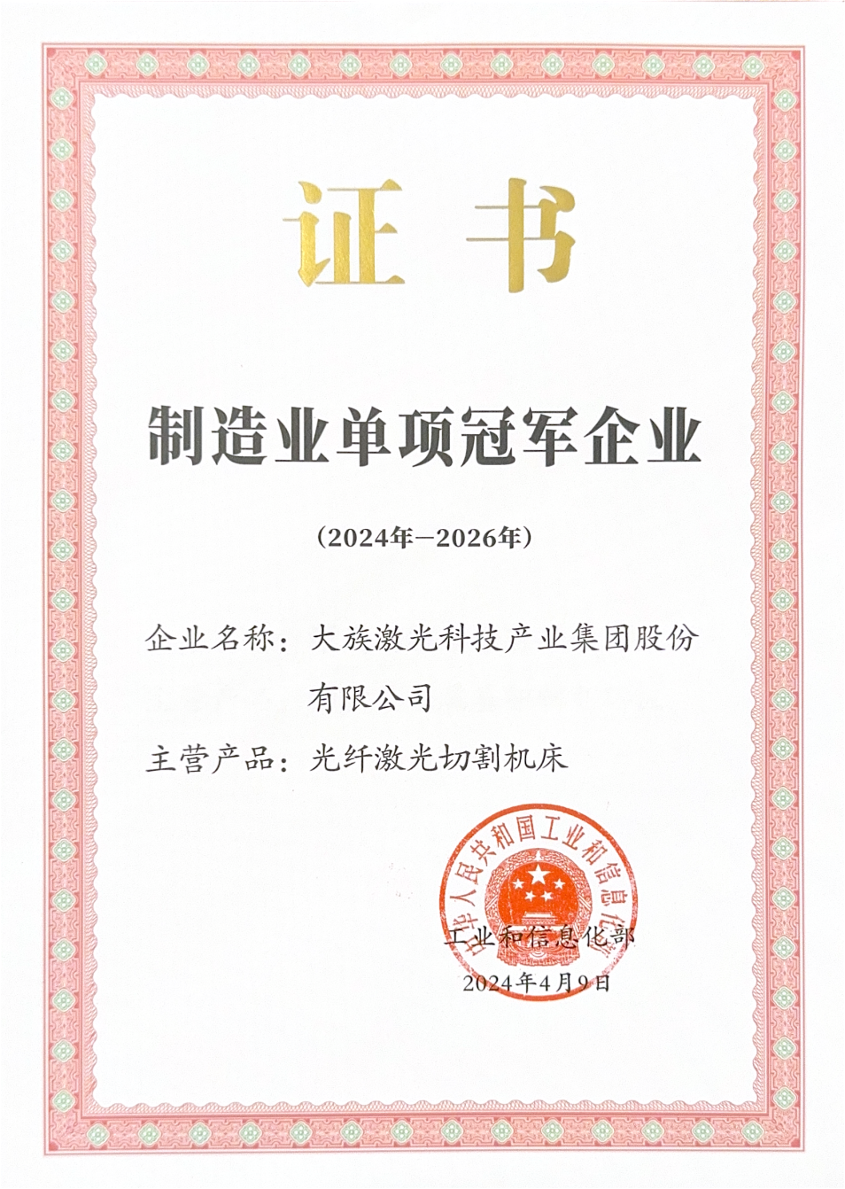 2024年,大族激光陸續斬獲“國家級制造業單項冠軍”、“MM AWARD創新產品獎”、“激光加工行業&金屬加工行業-榮格技術創新獎”、“第七屆紅光獎”、“國家科學技術進步獎”、“維科杯·OFweek2024激光行業年度榮譽”等多個獎項,為持續推動廣東制造業高質量發展增添了新動能。