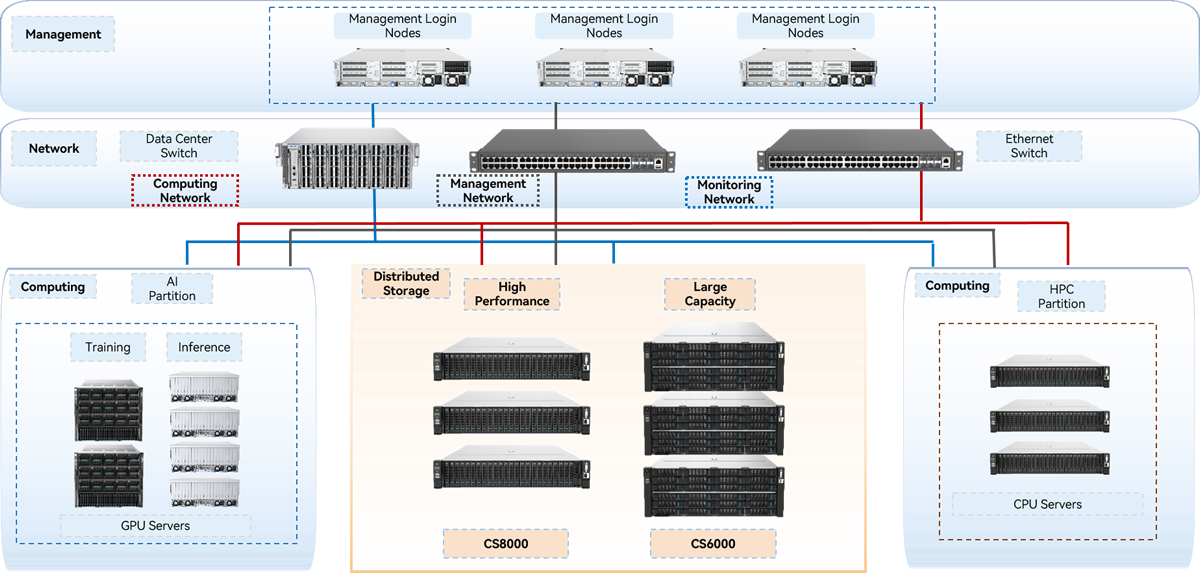 CNIT's high-performance distributed storage solution meets the storage requirements of large model training and inference scenarios, as well as high-performance computing (HPC) scenarios—including high performance, high reliability, high elasticity, easy migration, intelligent tiering, and multi-protocol compatibility.