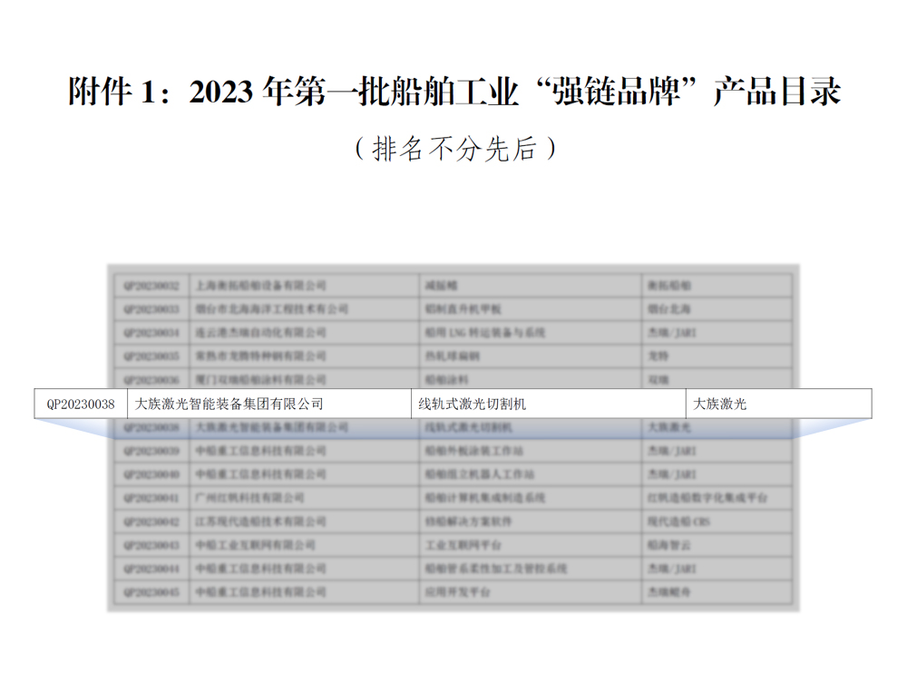 大族激光智能裝備集團(tuán)線軌式坡口切割機(jī),被認(rèn)定并列入船舶工業(yè)“強(qiáng)鏈品牌”產(chǎn)品目錄!