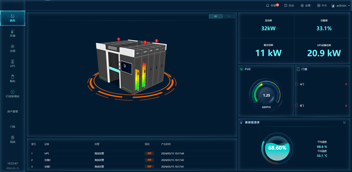 微動環(huán)系統(tǒng)主要由智慧監(jiān)控主機、傳感器/控制器、本地控制面板和外部聯(lián)動設(shè)備(接口)等組件組成,并與運行管理系統(tǒng) 軟件共同協(xié)作,實現(xiàn)環(huán)境監(jiān)控(煙感、溫濕度、水浸、視頻、門禁)、動力監(jiān)控(配電柜、UPS、電池、空調(diào)),管理監(jiān)控(資產(chǎn)管理、容量管理、能效管理、3D可視化)等功能。